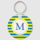 Bright Yellow and Blue Stripes Monogram Key Ring
