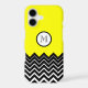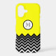 Cute trendy modern chic girly custom monogram case for your cell phone, ipad and more in a bright yellow color which can be changed by selecting a different color. The bottom portion of this case is designed with a black and white chevron zigzag image that can be enlarged, reduced and moved around by clicking "customize it" and selecting the chevron image then use the directional tools to move it around. Change the monogram with a different letter or initials.