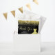 A beautiful bright yellow themed elegant watercolor dress gown on a black background with faux glitter at the top and bottom of the favour bag.