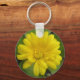 This beautiful keychain features a detailed photograph of a bright yellow marigold. The photograph was taken using macro photography and shows a stunning contrast between this bright yellow flower and its dark green leaves.