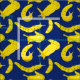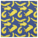 This fabric features a large print all over pattern of banana slugs in a bright, cheery yellow set against a royal blue background.