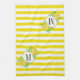 Bright Yellow Stripes Lemon Citrus Slices Monogram Tea Towel