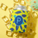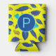 Bright Yellow Tropical Leaf Pattern Monogram Can Cooler