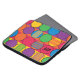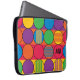 Laptop sleeve with my vector design of colourful circles and stripes with bands of purple, orange, red, yellow, green and turquoise