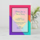 Generic party invitation. A cool geometric design. Many brightly coloured triangles and pyramids. Colours include pink, turquoise blue, bright blue, royal purple, orange and yellow. A modern contemporary design.. The middle is transparent white with a black border. Personalise / customise with your party details.