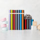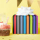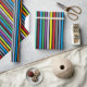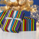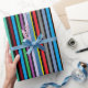 Birthday Gift wrap with red, blue, purple, green, orange, lime, and yellow stripes.