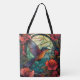 This large 18" x 18" tote bag is perfect for shopping, going to the gym, sleepovers at grandmas or a weekend getaway. Large enough to hold everything you might need. Beautiful design of a hummingbird and flowers is sure to be a hit with everyone.