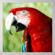 A close-up photograph of a Scarlet Macaw.