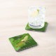 This awesome cork coaster features a detailed macro photograph of a small yellow colored moth with brown markings perched on a hollyhock leaf. In the photograph you can see the underside of the moths wings, the fur on the top of its back, its bulging eyes and its brown and white legs. You can also see that it has unfurled its feeding tube to test whether or not the hollyhock leaf is food.