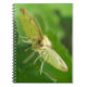 This awesome notebook features a detailed macro photograph of a small yellow coloured moth with brown markings perched on a hollyhock leaf. In the photograph you can see the underside of the moths wings, the fur on the top of its back, its bulging eyes and its brown and white legs. You can also see that it has unfurled its feeding tube to test whether or not the hollyhock leaf is food.