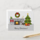 Brindle Boston Terrier In A Festive Christmas Room Postcard