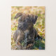 A brindle coloured puppy lays on the cool spring ground with a wild onion between its front paws. If you love puppies, our "Brindle Puppy and Wild Onion Jigsaw Puzzle" is for you. Frame your completed puzzle and hang it on the wall. Order yours today!