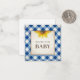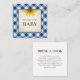 Boy Baby Q baby bring a book for baby insert card features a vintage sunflower with a boarder of gingham checkers in shades of blue and weathered paper in a unique miniature size. The reverse is space for book for baby poem. A country yet charming choice for summer picnic baby showers and barbecues. To see more barbecue shower ideas visit www.zazzle.com/vginvites