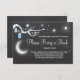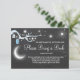 A perfect way to ask your guests to bring a book to your next baby shower! To the moon and back, with blue details on a black background.