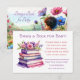 Send this sweet little "Bring a Book for Baby" card into your baby shower invitation to encourage baby shower guests to bring a book for baby, and to write a note inside. African-American baby girl sitting with her teddy bear in a field of flowers.