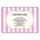 Add these baby shower 'PLEASE BRING A BOOK' (instead of a card) cards with your invitations. Pastel pink and white stripes colours with frame in faux gold. Editable template; add your own information.