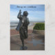Bring me sunshine postcard. Statue of Eric Morecambe on the seafront of Morecambe. Eric was half of the comedy duo Morecambe and Wise.