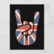 Cow says "moo," big rock salute hand with Union Jack says, "woo!" Colour, t-shirts, sweats, cards, gifts.