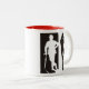 Silhouette of John Steed and Emma Peel of British TV fame. Retro 60's spy action on a two-tone coffee cup. Put some adventure in your morning coffee!