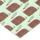 Tablecloth features an original marker illustration of a delicious slice of British Christmas cake, topped with holly leaves and berries.