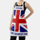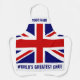 British flag custom BBQ cooking kitchen apron for men and women. Add your own funny quote, name or saying. Personalised baking aprons with humourous text. Fun Birthday gift ideas for him or her. Also great for patriotic barbecue party. Available in small, medium and large sizes. White or custom background colour. English pride design. Great Britain UK United Kingdom, England. Make one for dad, mum, wife, husband, boyfriend, girlfriend, uncle, brother, grandma, coworker, chef, boss etc.
