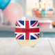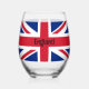 British Flag Union Jack Design Stemless Wine Glass with customisable text.