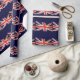 The Union Jack overlaid on a royal blue background, features on this cool, patriotic wrapping paper.