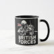 Cool "British Forces" design depicts an illustration of a British soldier holding a rifle. This proud British army design makes a nice gift for a British soldier or for anyone who supports the British Military.