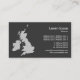 A business card with a map of the British Isles. Company details on the front with name and contact details on the back in a tonal style contrasting the front.