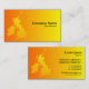 A business card with a colour shaded map of the British Isles. Company details on the front with name and contact details on the back with a matching background.