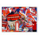 Such a bright and colourful collection of British souvenirs, Union Jack flags, red London bus, telephone box and post box plus much more. Enjoy!