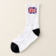 British Union Jack flag custom name sport socks. English pride design with personalised text. Add your own monogram, funny quote, saying or slogan. Uk United Kingdom , GB Great Britain symbol. Novelty Birthday gift idea for him or her. Create your own white tennis socks for gym, fitness and more.
