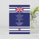 An elegant, formal and patriotic British pride theme featuring a dark blue background on which horizontal white stripes hug the top and bottom edge on which a Union Jack flag rests. The back is the same dark blue as the front and additional details may be added there.