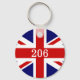 British Union Jack flag custom hotel room number Keychain. Create your own round metal keychains for hospitality business, hotels, motels, rental apartments, lodges, cabins, rental house, dorm, hostel, locker, office, suite, bedroom, room, school class, storage unit facility and more. Upload your own ciuntry flag optionally. Uk flag of United Kingdom, Great Britain.
