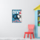 British Virgin Islands Caribbean vintage scuba mask travel poster design. A blue and white diver down flag background with a retro scuba mask and word "Dive" at the top.