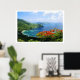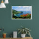 British Virgin Isles poster shows the beautiful Cane Garden Bay, Tortola. In fantastic, almost technicolor this poster shows the art of mother nature in all her lush glory green grass, colourful trees and bright blue sea and will make a perfect gift of a poster for your home or office.