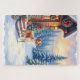 Share warm holiday wishes with this festive Christmas card featuring a cheerful Brittany beside a rustic cabin decorated for the season. Illustrated in a cozy watercolor style with softly falling snow and glowing lantern accents, this design captures the charm of winter celebrations. The blank layout offers plenty of room for your personal message, making it perfect for dog lovers and festive stationery fans.