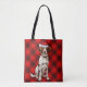 A terrific and cheerful red buffalo seasonal plaid creates a fun holiday tote bag to carry around gifts, shopping, toys, food, you name it and all while showing off your beloved Brittany Spaniel dog.
