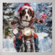 Brittany Spaniel Dog Riding Motorcycle Christmas Poster