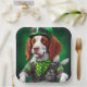 Brittany Spaniel driving bike St. Patrick's Day Paper Plate