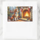 Brittany Spaniel Fireplace with Christmas Lights Rectangular Sticker