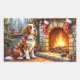A cozy Christmas artwork featuring a cheerful Brittany Spaniel sitting beside a glowing fireplace adorned with stockings and twinkling Christmas lights. This festive holiday scene highlights the Brittany Spaniel’s joyful personality and loving nature, making it a perfect choice for dog lovers and warm seasonal decor. Bring the magic of Christmas and the spirit of companionship to your home with this heartwarming pet-inspired artwork.