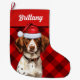 Brittany Spaniel Red Buffalo Plaid Personalised Large Christmas Stocking
