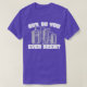I give wanted to give this a 4 instead of a 5 because these Basic DARK T0shirts run unexpectedly SLIM or Narrow. Which is great if you do not have a potbelly, but I have a paunch. It isn't the shirt's fault that I've got a beer belly. The design and shirt itself is a quality cotton shirt. The color is more of a deep purple, but still a very pretty color. The Basic DARK T-shirts run a bit SLIMMER than the Basic Ts. The neck is a fraction narrower (or seems to be narrower) also. I'm a paunchy middle-aged woman and my neck is 12 inches (31cm) thick and the neckline fell about the same as in the photo of the man, and I had the desire to tug it a bit. So if you're a thick necked man or like loose shirts, be aware these are slimmer shirts. Once I get rid of my lockdown paunch it'll look great. The shirt washed well in cold water with no apparent bleeding. We don't have a dryer, so it hung dry. Did not shrink. Love the colors and the design. The design looks smaller on my shirt than it does on the model on-line. But still, it looks good on the shirt. The printing looks as it does on the model, just the size seems fractionally smaller. Washed garment in cold water, hung dry and design appeared unaffected.