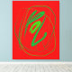 This canvas showcases an expressive green line making a big movement across the red surface. It is inspired by the dance technique of José Limón.