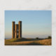Postcard with the folly Broadway Tower on a hill near Broadway overlooking the Cotswolds in England, UK at sunset.