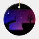 A drawing of a man standing silhouetted on a broken bridge, looking across the gulf where a lone willow tree stands. In the sky behind him are the moon and stars in a dark blue sky, fading to red on the far side for the beginning of the sunrise. An illustration of the emotions of hope, despair, and loneliness as he reaches the end of the road and finds the way impassable.