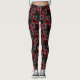 Broken hearts red and grey on black background leggings