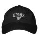 Minimalist BRONX NY White embroidered on Black cotton hat. White embroidery is customisable to other colour choices by selecting the "Edit Design" tool button. Also available is the option to select choice of hat colour on the main item page.