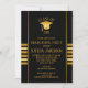 Ornate bronze and gold gradient stripes and frame with gold text on black background graduation party invitation. The text boxes are easy to personalise with your own information. If you need help, please contact me through my store.